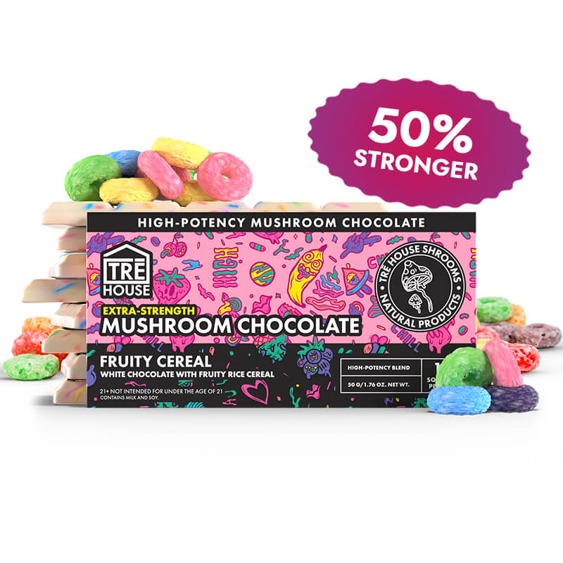 TRĒ House Fruity Cereal Chocolate Bars bring a playful, nostalgic flavor to the brand’s upgraded extra-strength chocolate lineup. Now 50% stronger, this bar delivers a deeper, longer-lasting experience while keeping the taste fun, smooth, and surprisingly balanced.